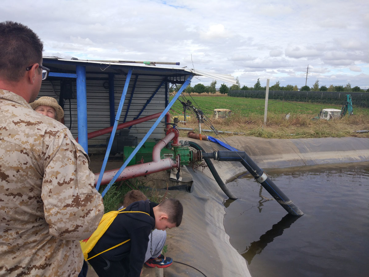 На улице было тепло, дождя не было, хотя обещали, поэтому экскурсия прошла с приятными эмоциями, всё было на высшем уровне. Особенно впечатлила техника, с помощью которой собирают урожай и ухаживают за садом. Это китайский и итальянский трактора, самоходные платформы. А еще на себя обратил внимание бассейн с водой для орошения, из которого поливаются сады. По каждому ряду проходит трубка с водой, куда еще дополнительно добавляют удобрение. Полив происходит капельным путем (СКО – Система капельного орошения).