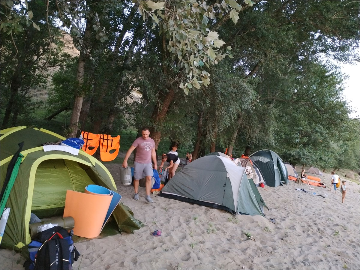 А вот с местом для ночевки было не все так просто. На заранее запланированной точке оказался неудобный для отдыха берег, и пришлось искать места ниже по течению, но все хорошие были уже заняты. И поздно вечером, ближе к сумеркам, нашли более-менее подходящее, и разбили лагерь.