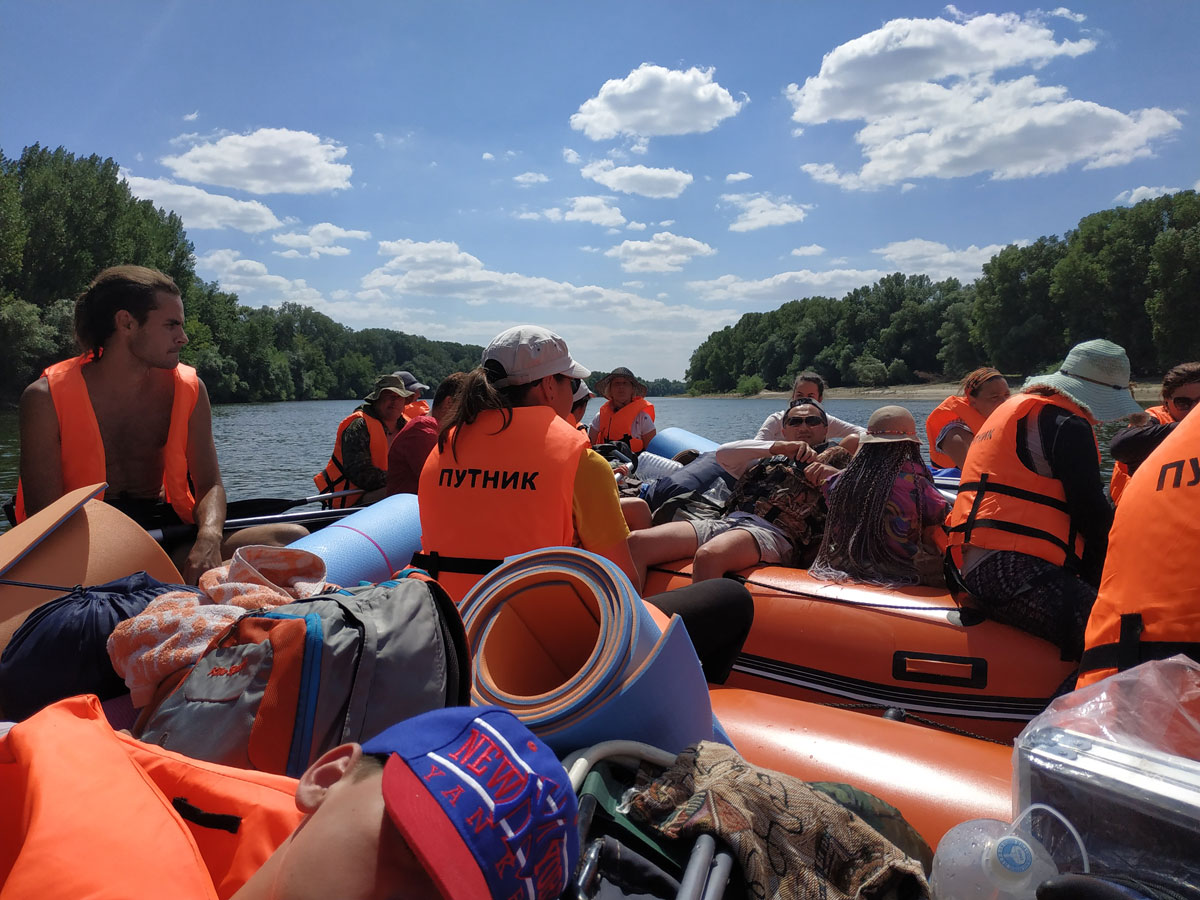 Очень может быть, что отдыхающие на берегу люди принимали нас за гастролирующих бродячих артистов. Где это видано, чтобы на носу рафта, которым управляют дружно работая веслами 10 гребцов, пели, да еще и в микрофон?! Такое может организовать только клуб «Путник».