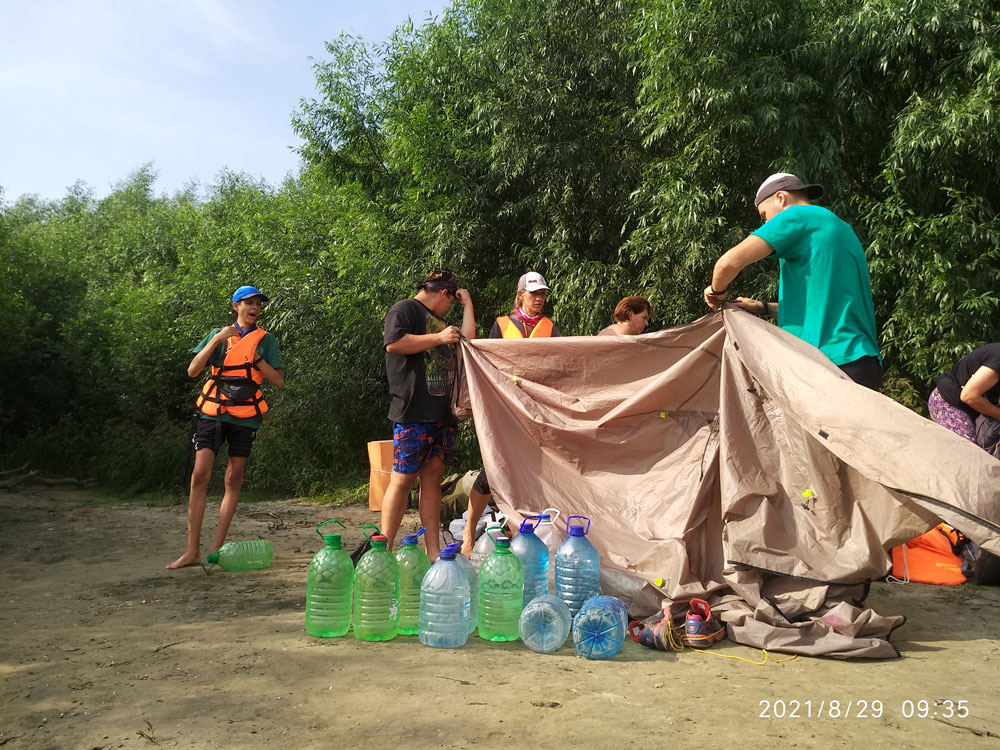 Снаряжение в приехавший транспорт грузили, медленно, так как все были уставшие. Разгрузились в клубе «Путник», раскидали снаряжение по местам и перекусили: чай, кофе, арбуз (купили на обратном пути).