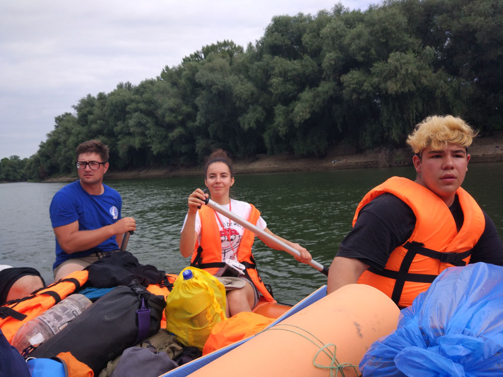 Из-за обильной росы сушили палатки, упаковывали групповое снаряжение, грузили рафт (из-за неопытности матросов немного долго), затем общее фото и выход на маршрут. Тираспольский паром можно проходить с любого края берега, трос натянут высоко с обоих концов. Главное, не проходить по центру.