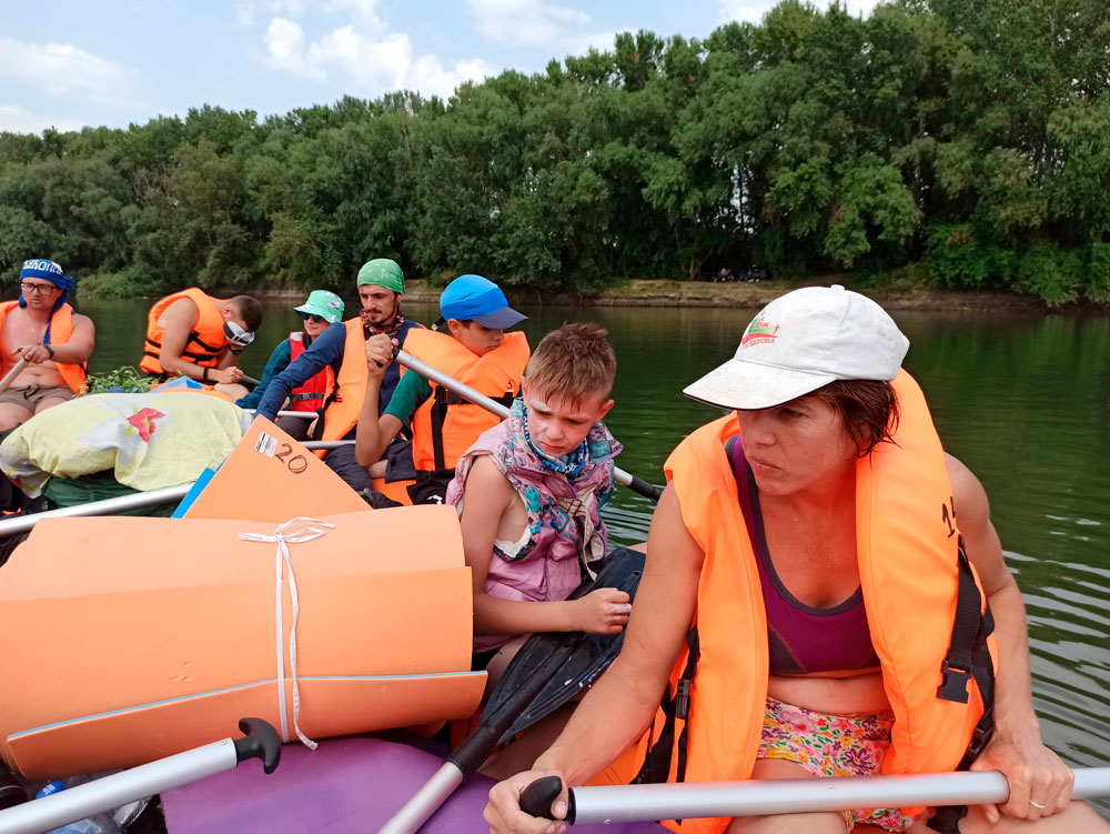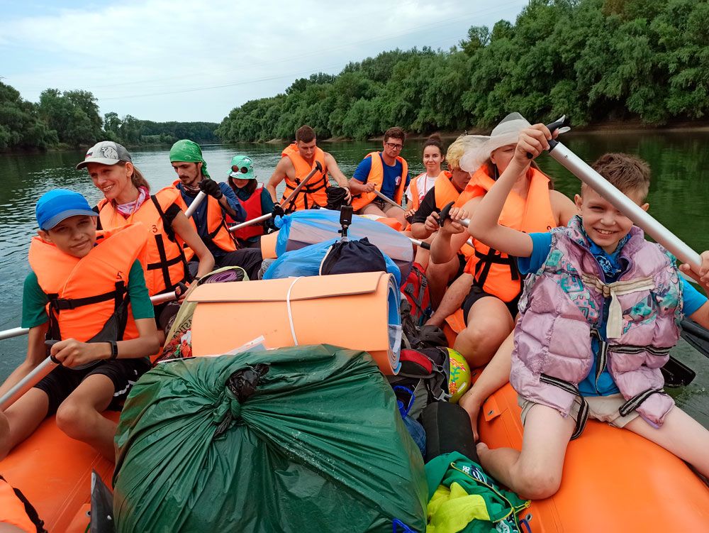 Двумя заряженными электрическими насосами наши юноши быстро накачали больше половины рафта. Но, к сожалению, по неопытности не закрыли клапана, воздух вышел, и пришлось накачивать мускульной силой насосом – «лягушкой». По итогу накачали рафт за 40 минут вместо 15.