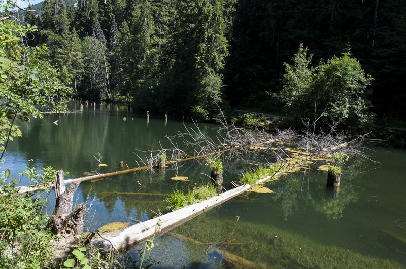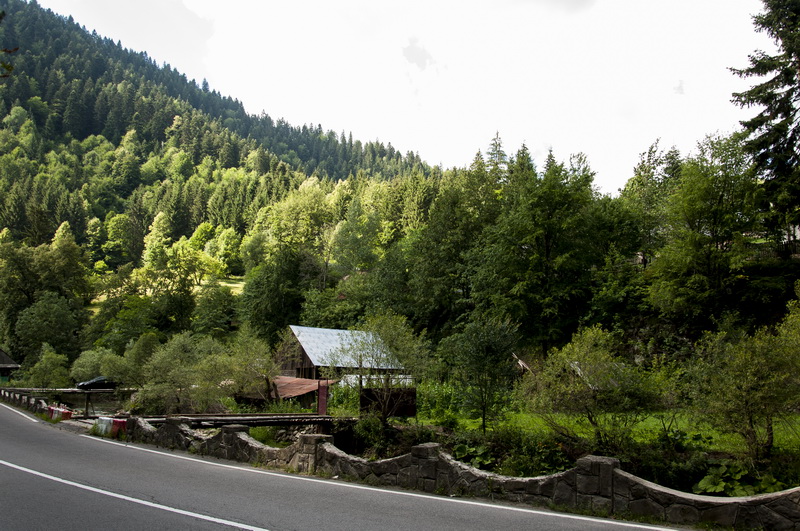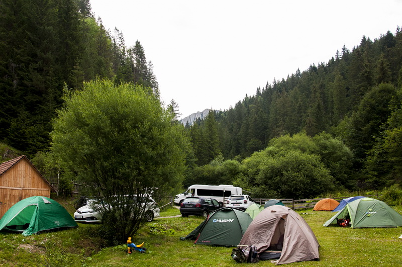 Перед самой границей сделали техническую остановку, и уже в начале четвёртого 16 июля колесили по Румынии. Два с половиной часа – и мы на месте! К половине седьмого утра мы разгрузились и расположились лагерем на территории кемпинга у одноимённого озера Лаку-Рошу (Lacul Roşu). Это естественное озеро на северо-востоке Румынии, в Восточных Карпатах, рядом с ущельем Биказ (Cheile Bicazului). Озеро образовалось в 1837 году в результате сильных ливневых дождей и мощного обвала скал, которые перекрыли горную речку, образовав некое подобие дамбы. Высота поверхности над уровнем моря – 983 м, площадь – 115 га, длина – 8 км, ширина – 300 м.