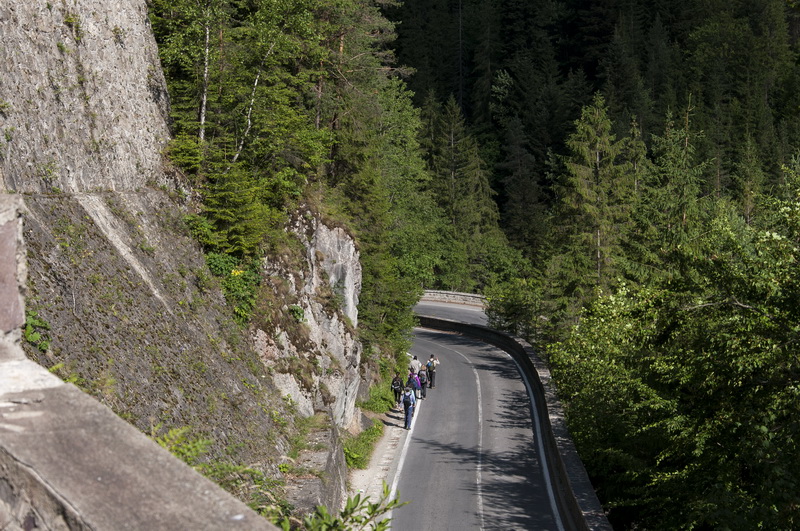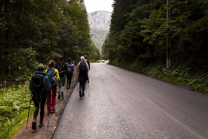 17 июля подъём был в шесть утра. В начале восьмого позавтракали, собрали вещи. И пошли на Via Ferrata (или железный путь). По словам нашего руководителя, нам предстояло пройти 5 км за полтора часа. Но по итогу прошли 10 за 2,5 часа. Дорога шла мимо высоких скал ущелья Биказ (Cheile Bicazului), рядом бежала речка Биказ (Bicaz)с водопадами и порогами, вдоль дороги работали базарчики с сувенирами.