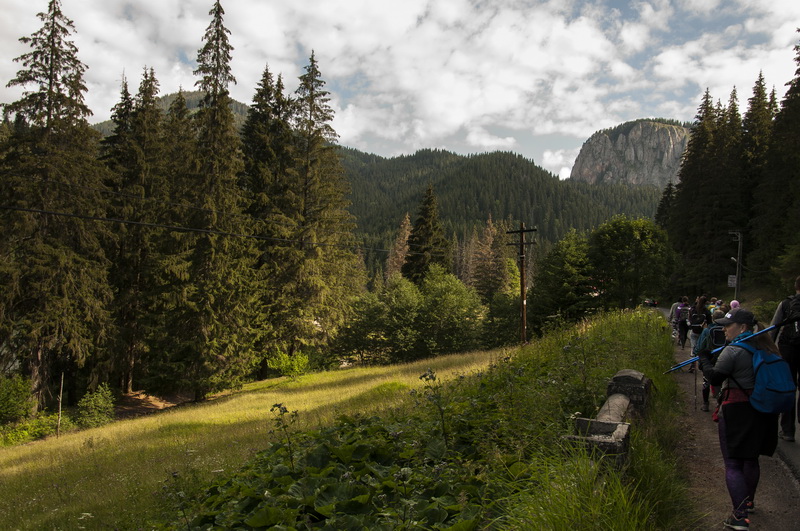 В начале десятого вышли на маршрут. Проходил он мимо озера Lacul Roşu, на берегу озера Александра рассказала нам историю-легенду о красивой девушке, которую поймал убийца. Она попросила помощи у гор, в итоге произошел раскол в ущелье и образовалось озеро, которое своей кровью обагрили убийца и эта девушка. А напротив выросла скала Vârful Ucigașul или Киллерстоун, высотой в 1378 м, которая носит название убийцы. На вершину этой горы мы как раз и направлялись.