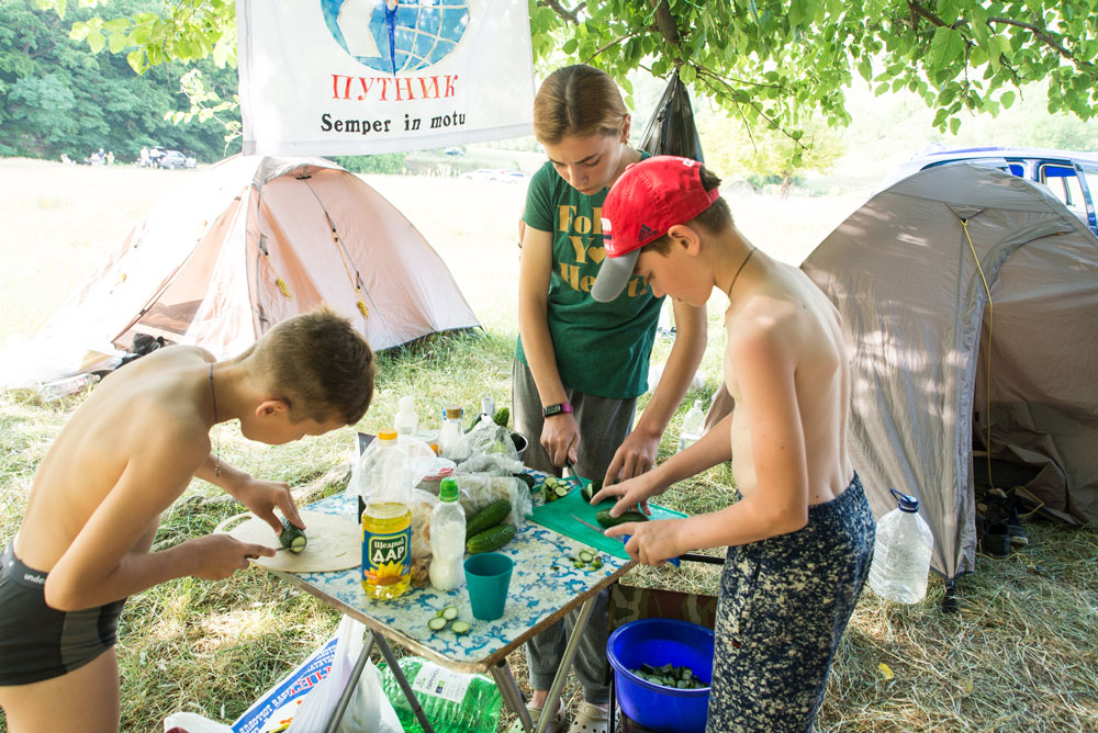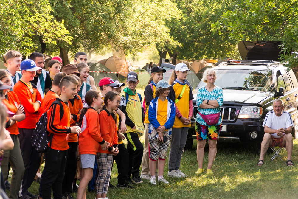 На следующее утро подъём был в 7:30, а у дежурных в 6:30. Далее завтрак, построение, торжественный подъём флага соревнований, жеребьёвка, по результатам которой нашей команде досталось стартовать первыми. Как они потом рассказали – «Сразу же отправились на первый КП с уверенностью. Добежавши до места, на котором мы ожидали увидеть КП мы отчаялись, мы прочесали всё, но так ничего и не нашли. Минут через 10 подошла другая команда и уже вместе искали это «чёртово» КП. Через какое-то время всего нас уже было 6 команд! Мы решили отправиться на поиски второго КП потому что уже потеряли надежду найти первое. Мы прошли по красивой аллее, там мы чуть не свалились в Реут, так как там был крутой склон. Дальше пройти мы не решились и вернулись обратно. После ещё долгих рассуждений и предложений мы с командой из Бельц вернулись в лагерь.» Вот такое было первое выступление команды юных туристов клуба «Путник».