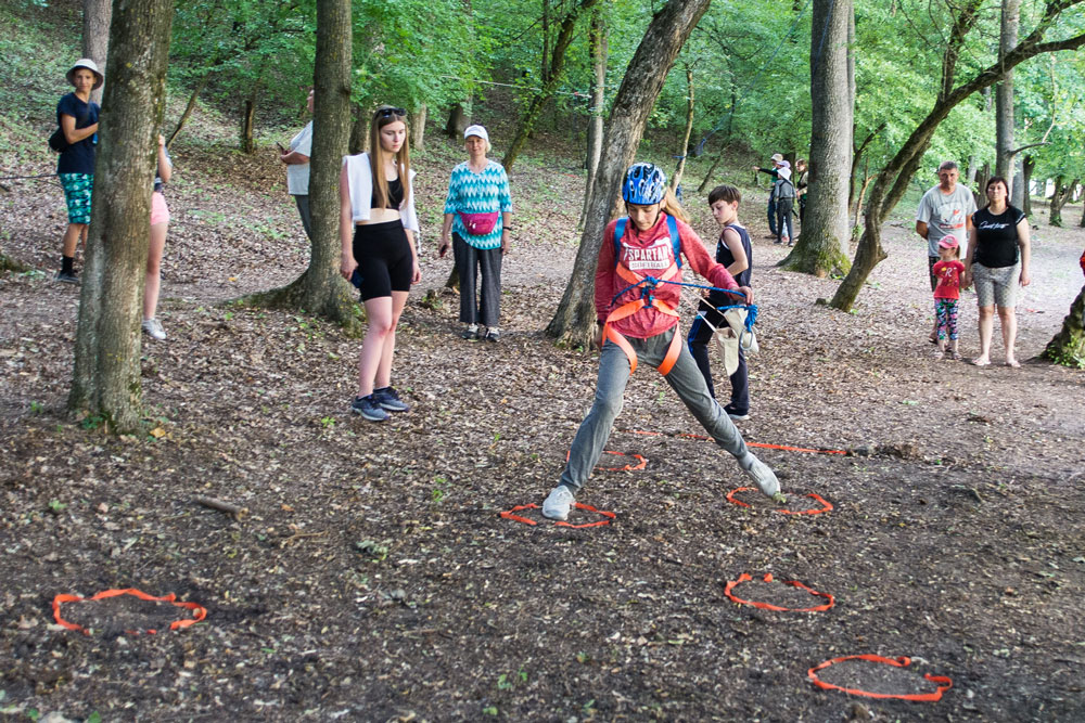 А в это время на горе проходили соревнования по горному туризму. Команда клуба «Путник» не участвовала, но внимательно следила за происходящим – на следующий год обязательно попробуем! Ребятам позволили тоже пройти эту трассу. Всем очень понравилось, не смотря на то что многим было страшно.