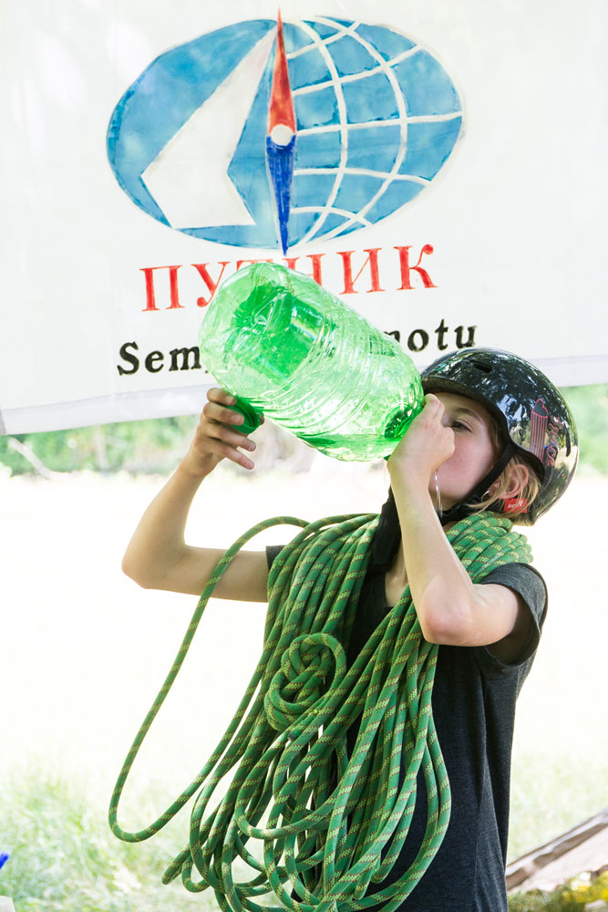 Спуск был намного труднее и страшнее, но, естественно, все справились – внизу покорителей вершин ждал обед. Сразу же после обеда спортсмены открыли для себя купальный сезон. Купание продолжалось два с половиной часа. Потом был ужин, после которого ребята решили прогуляться по территории. Вернувшись, юные туристы собрались в одной палатке и играли в «кто я?». После бурно проведённого дня в 10 часов все разошлись по своим палаткам и благополучно заснули.