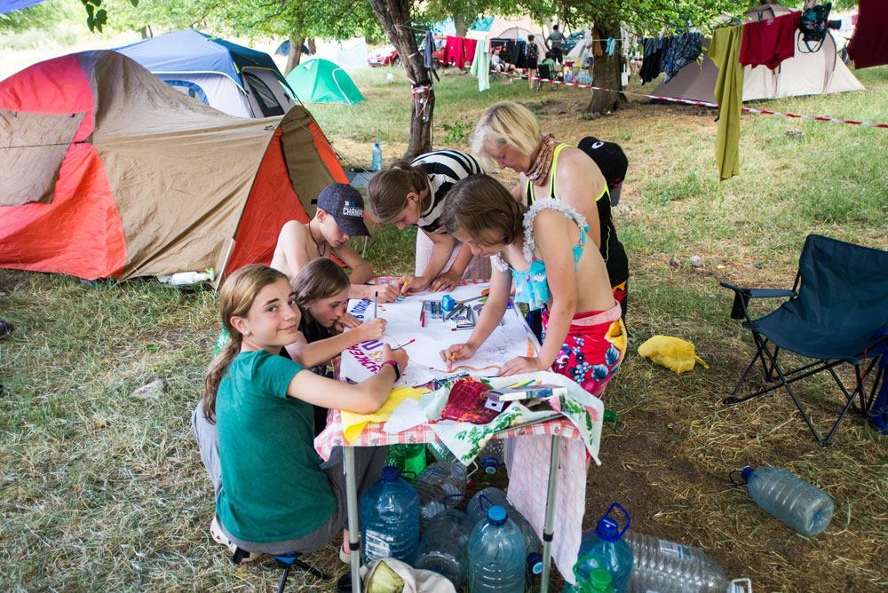 Как только 22 июня мы приехали, то все сразу же обратили внимание на живописные виды, высокие холмы и реку Реут. Выгрузили все вещи из машины, расставили палатки и наши юные спортсмены во главе с тренером – Оксаной Александровной – отправились покорять «гору». Подъём был трудным, но как только ребята достигли вершины, то поняли, что это было не зря – все с удивлением смотрели в даль, оглядывая всю красоту и великолепие панорамы.