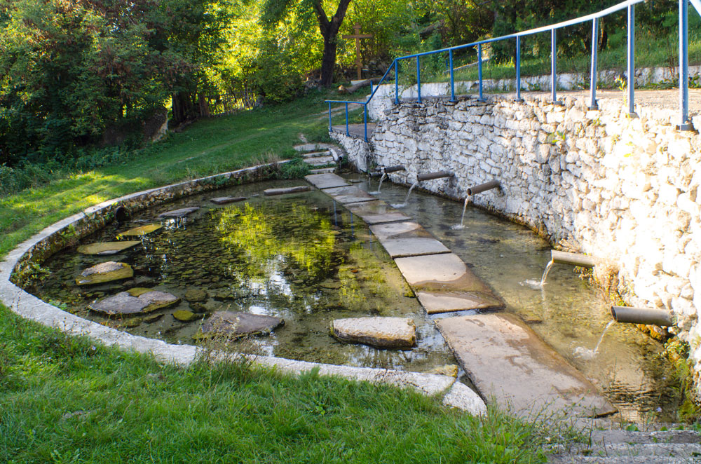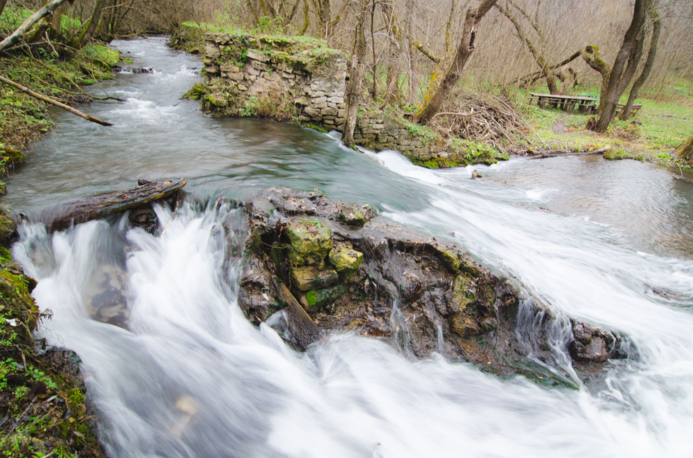 Вниз по течению от с. Строенцы берега Днестра становятся более пологими. На левом берегу располагается с. Белочи. Здесь сохранилось здание водяной мельницы, а возле него шумит водопад, разбиваясь о камни разрушенного мельничного шлюза.
